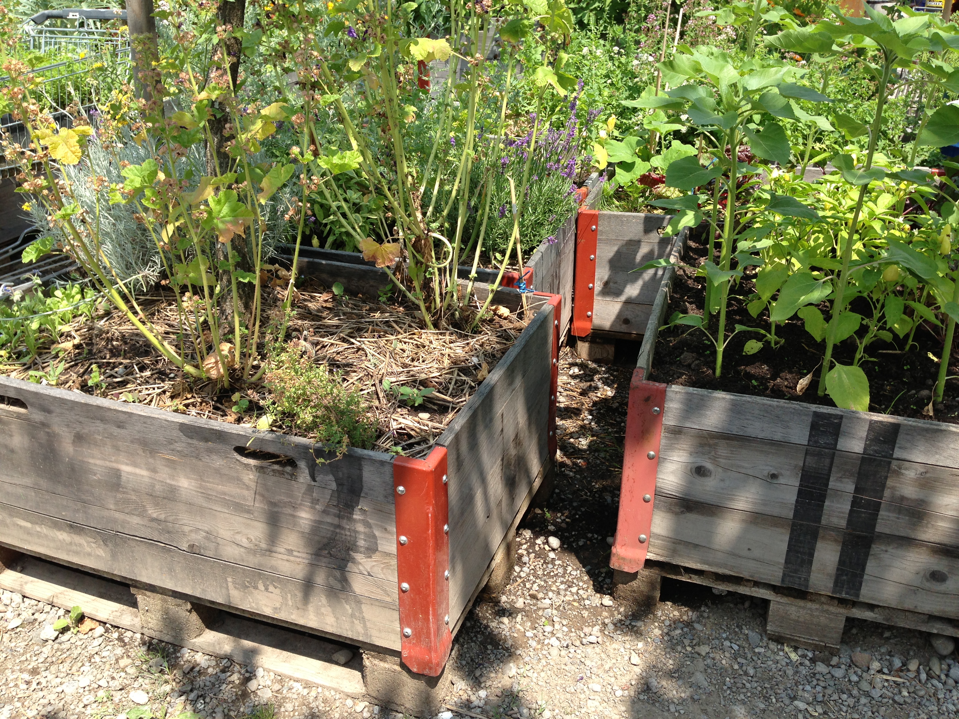 Ende Juni wurden nun die ersten Boxen und andere Gefässe mit Kräutern und Gemüsesetzlingen bepflanzt. Im Rahmen des Anlasses Let’s Talk wurden Beispiele dieser Kleinstgärten auf den Arenaplatz nach Zug transportiert und fand beim Publikum grosse Beachtung.